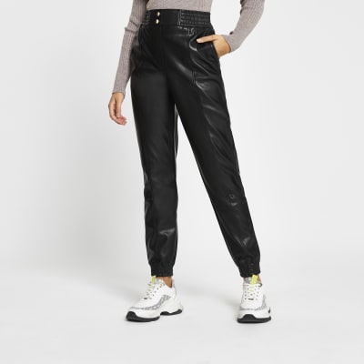 Black faux leather slim leg joggers River Island